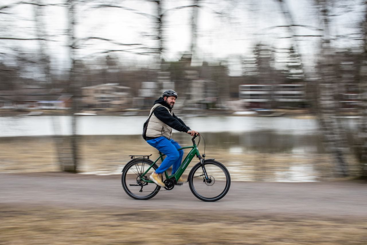 “Sellaisella matkalla on kyllä mukavampi, jos on sähköavustus. Sähköpyörät on työmatkoihin mahtavia, koska pidempiäkin tai mäkisiä reittejä voi pyöräillä helposti. Ei tarvitse saapua toimistolle hikeä valuvana”, Esko naurahtaa.