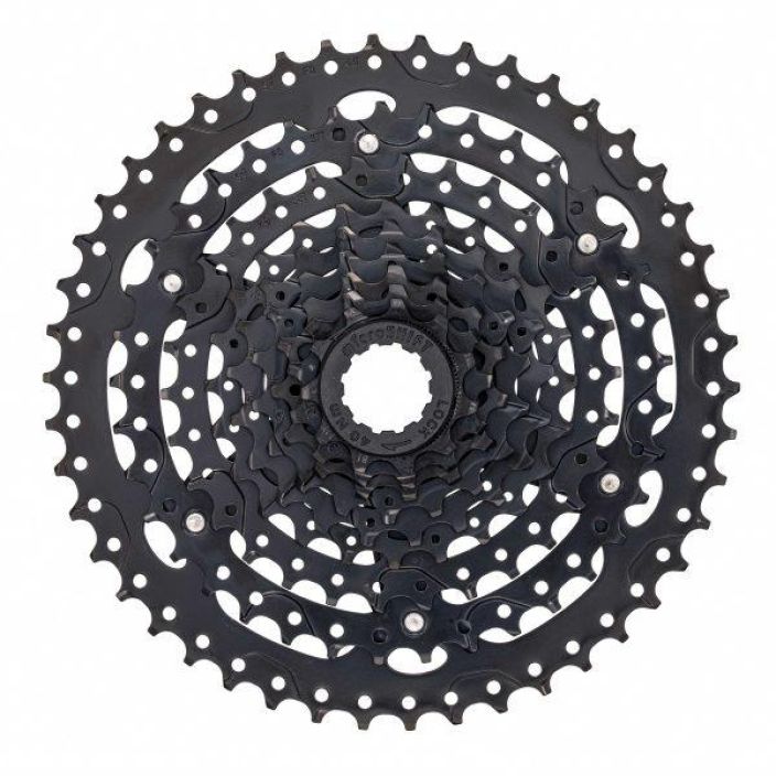 Microshift Advent 9v 11-46 rataspakka on yhteensopiva Shimano HG- ja SRAM-vapaarattaiden kanssa. Olitpa sitten nousemassa jyrkkää mäkeä tai laskemassa vauhdikkaasti alamäkeen, tästä kasettipakasta löytyy aina sopiva vaihde kaikille ja kaikkiin tilanteisiin.